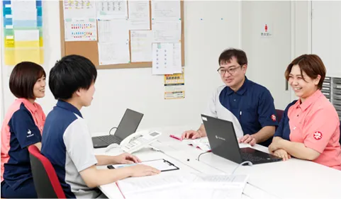 訪問する前後の状況なども踏まえて、在籍する看護師、理学療法士、作業療法士、言語聴覚士などで多職種連携を図り対応し、